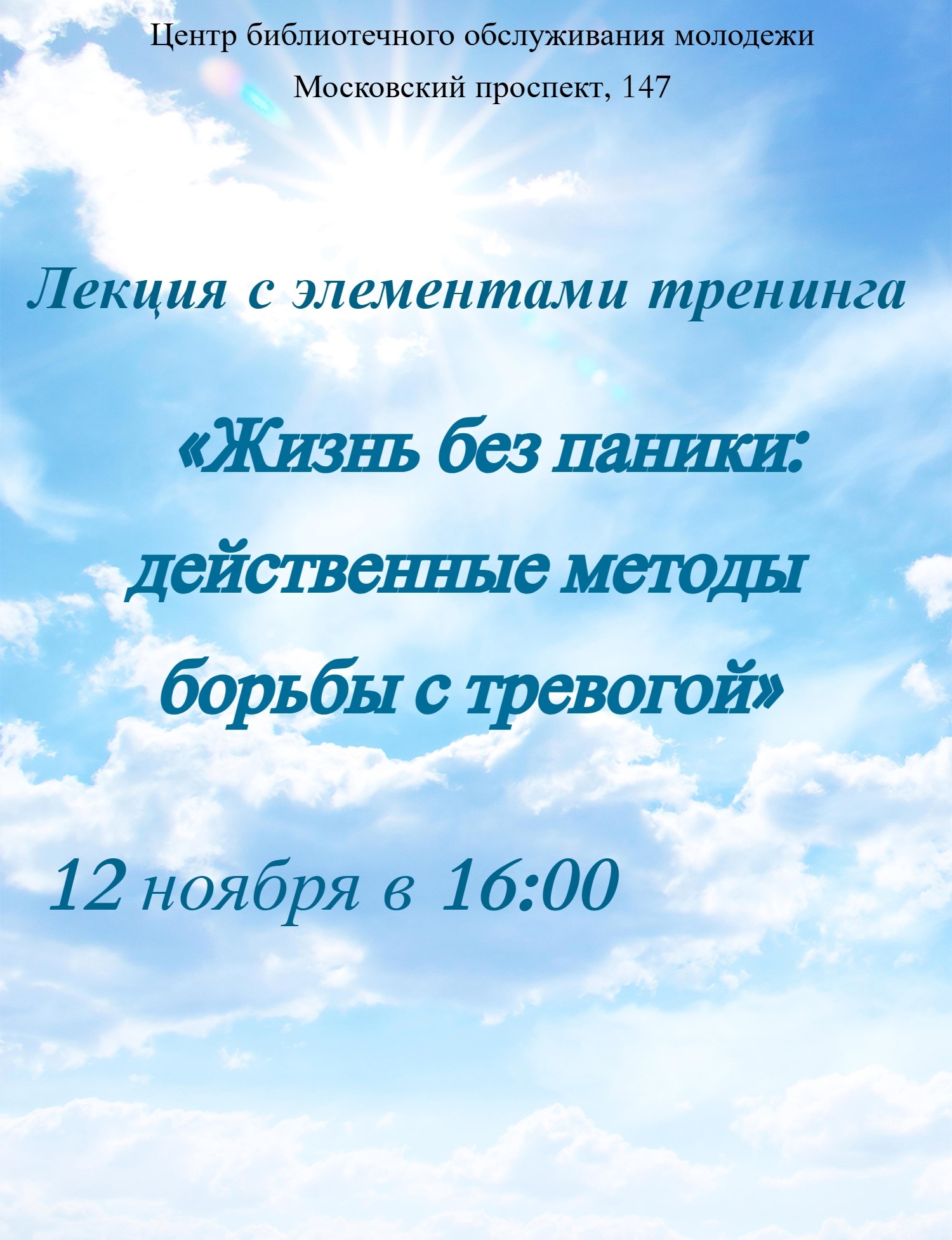 График работыЛекция с элементами тренинга "Жизнь без паники: действенные методы борьбы с тревогой"